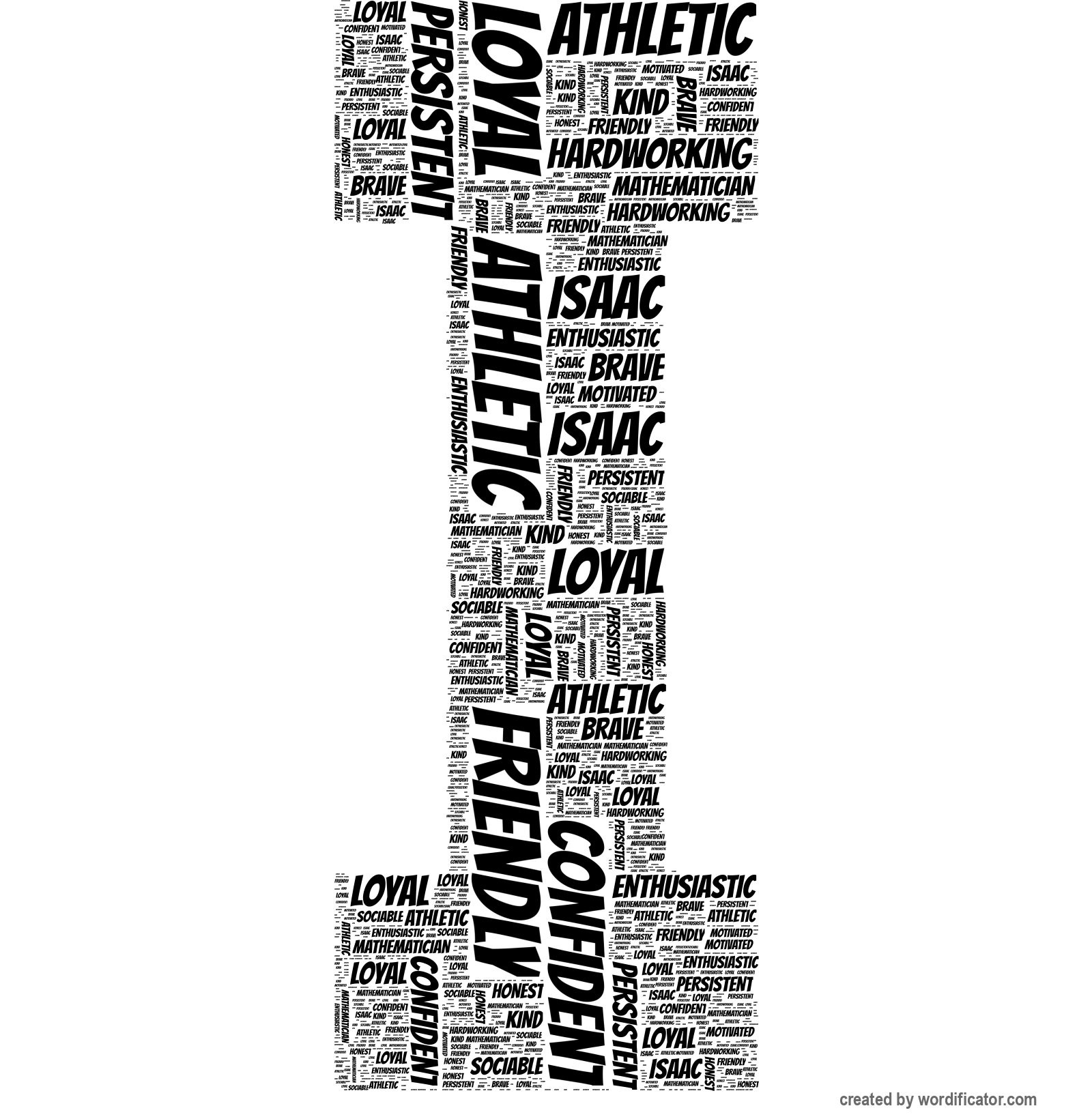 honest hardworking athletic mathematician sociable enthusiastic friendly confident kind loyal brave persistent motivated Isaac