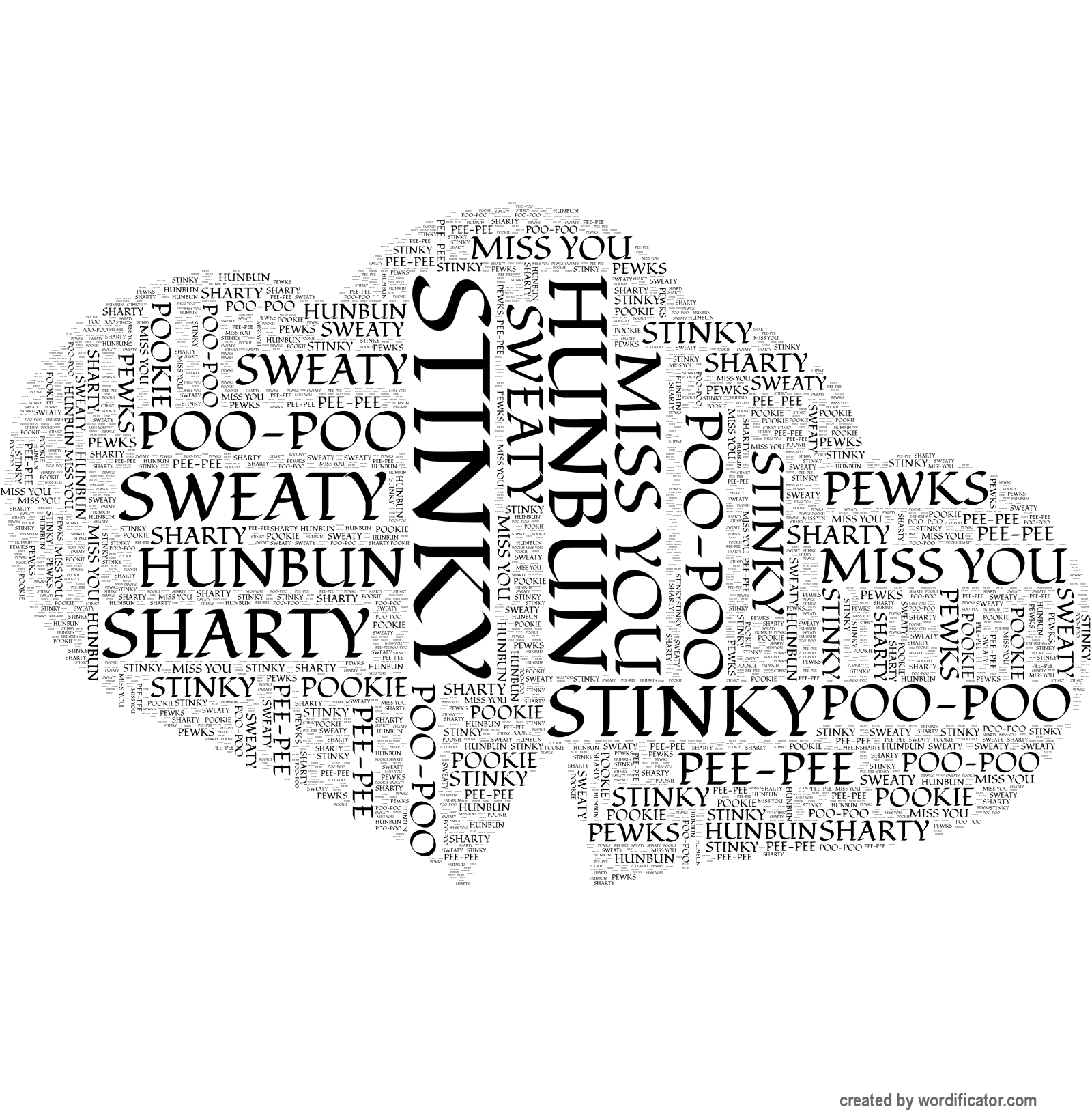 Pookie Stinky Poo-Poo HunBun Sharty Miss You Sweaty Pee-Pee Pewks