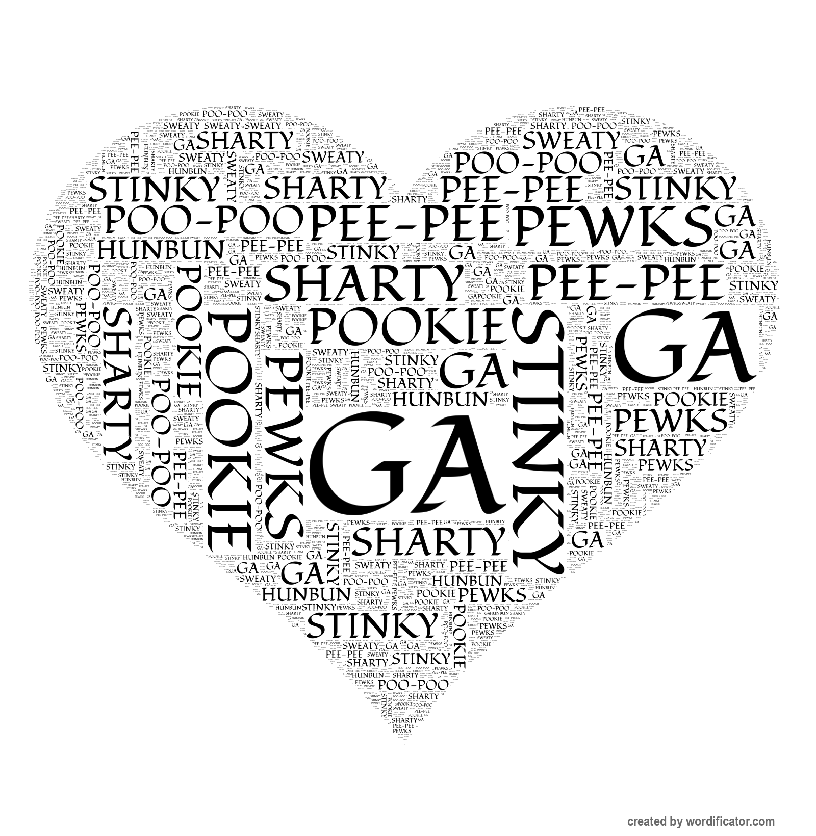 Pookie Stinky Poo-Poo HunBun Sharty Sweaty Pee-Pee Pewks GA