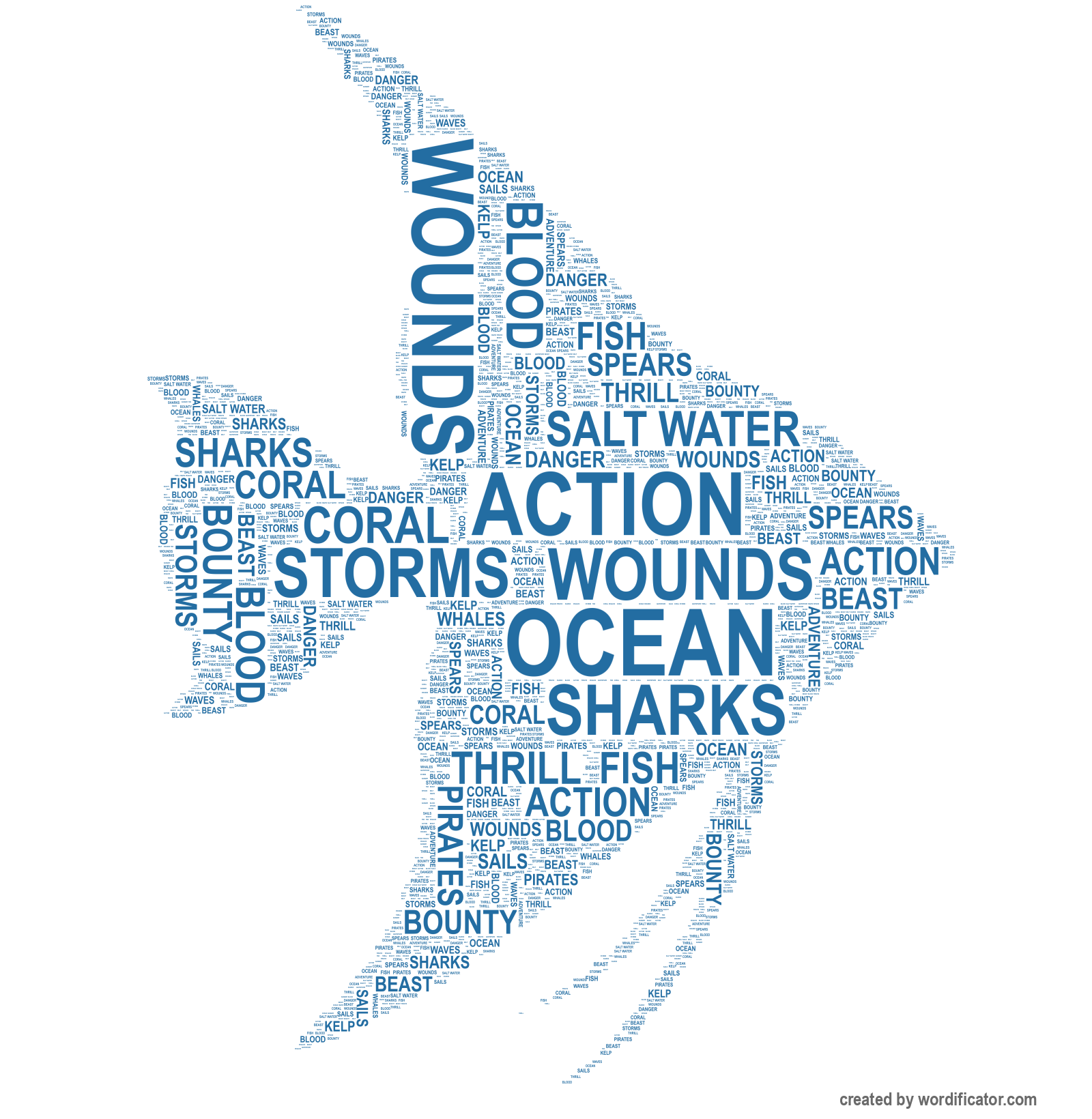 Salt water Beast Sharks Spears Danger Adventure Fish Storms Whales Pirates Waves Ocean Sails Thrill Bounty Action Coral Kelp Blood Wounds Crew mates Captain Biscuit Vicious Deadly Misunderstood