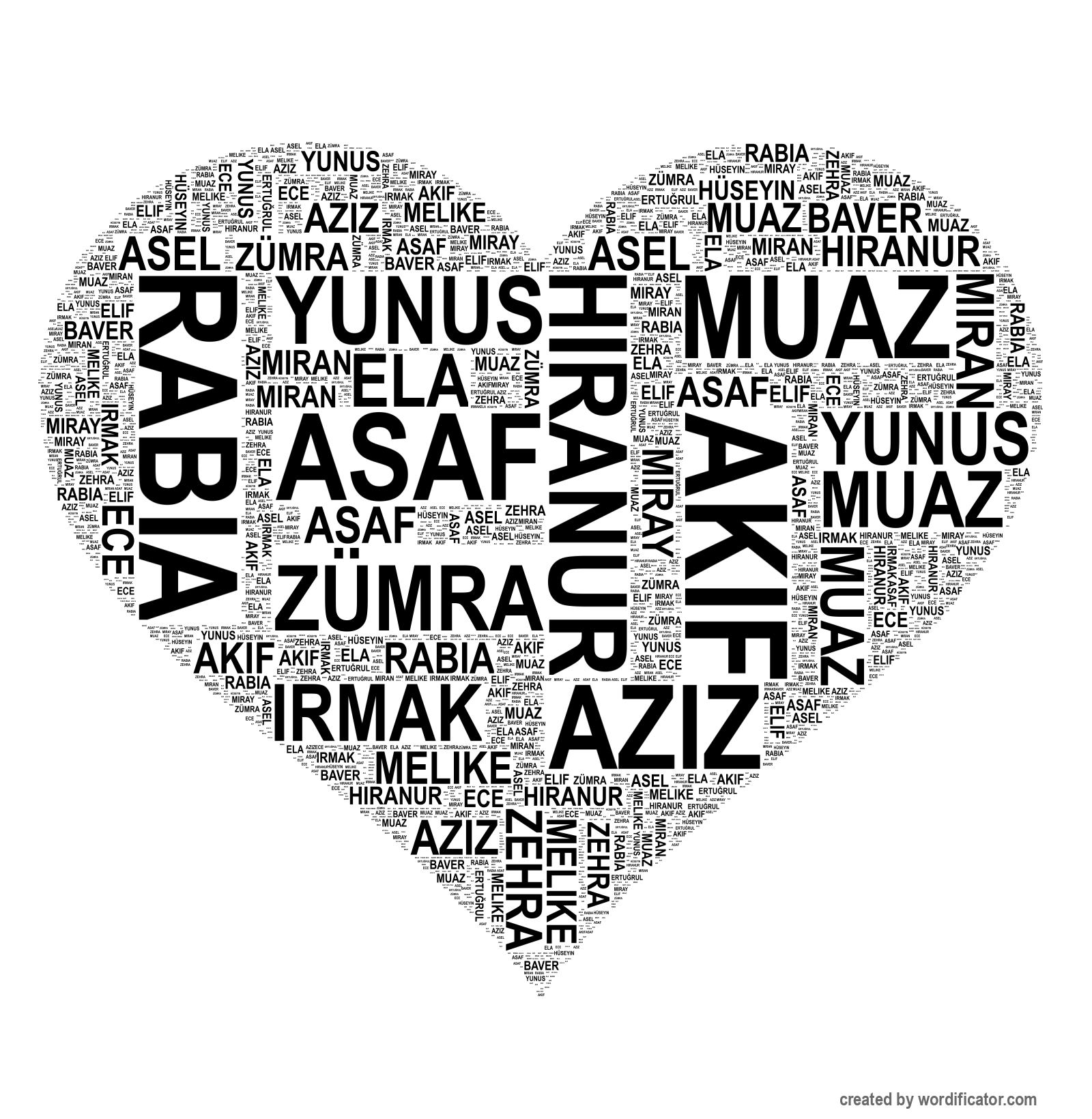 Elif Ece Melike Zümra Zehra Hiranur Asel Irmak Rabia Ertu?rul Hüseyin Ela Miray Miran Aziz Asaf Akif Baver Muaz Yunus Emir Eymen Hamza