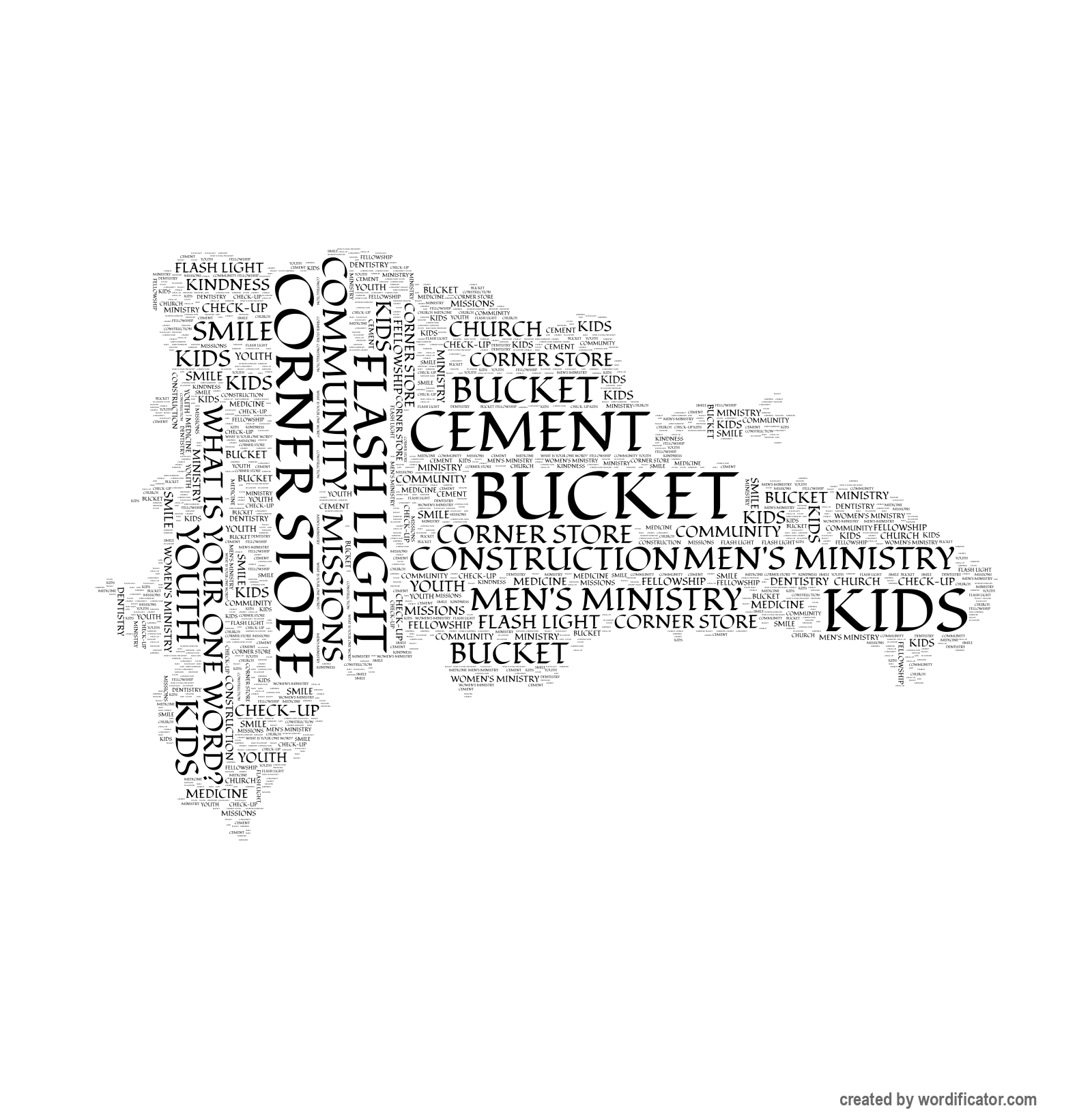 What is your One Word? Flash Light Women's Ministry Men's Ministry Corner Store Kindness Community Cement Fellowship Ministry Missions Smile Kids Check-up Dentistry Construction Youth Bucket Medicine Church Guira Tambora Music Instruments DR Bon Mango Re-Vision For-the-least-of-these Cooking Welding Refugio