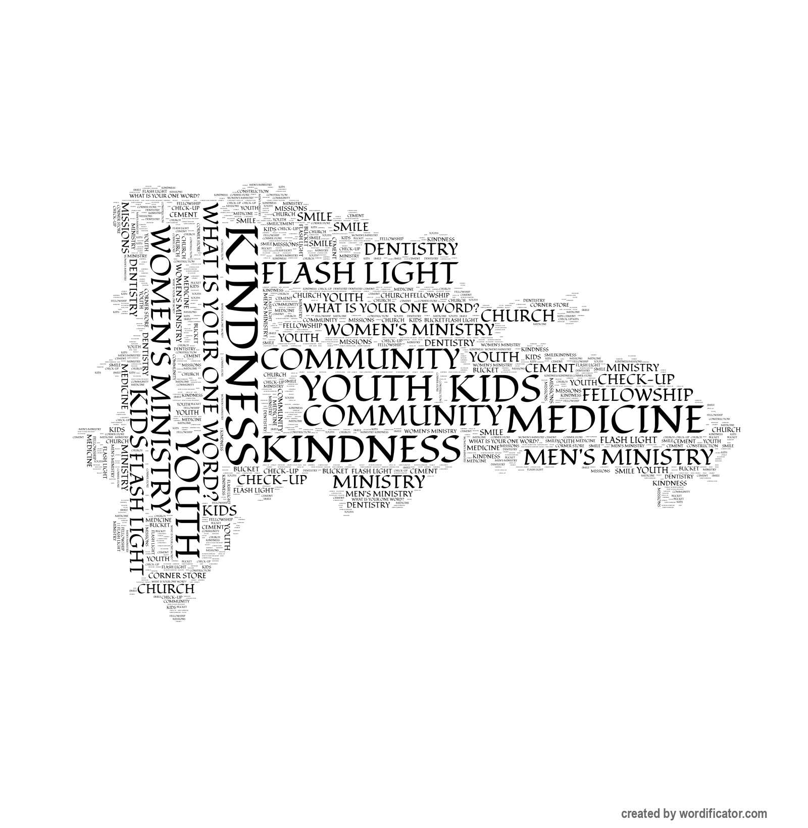 What is your One Word? Flash Light Women's Ministry Men's Ministry Corner Store Kindness Community Cement Fellowship Ministry Missions Smile Kids Check-up Dentistry Construction Youth Bucket Medicine Church Guira Tambora Music Instruments DR Bon Mango Re-Vision For-the-least-of-these Cooking Welding Refugio Baseball Sports