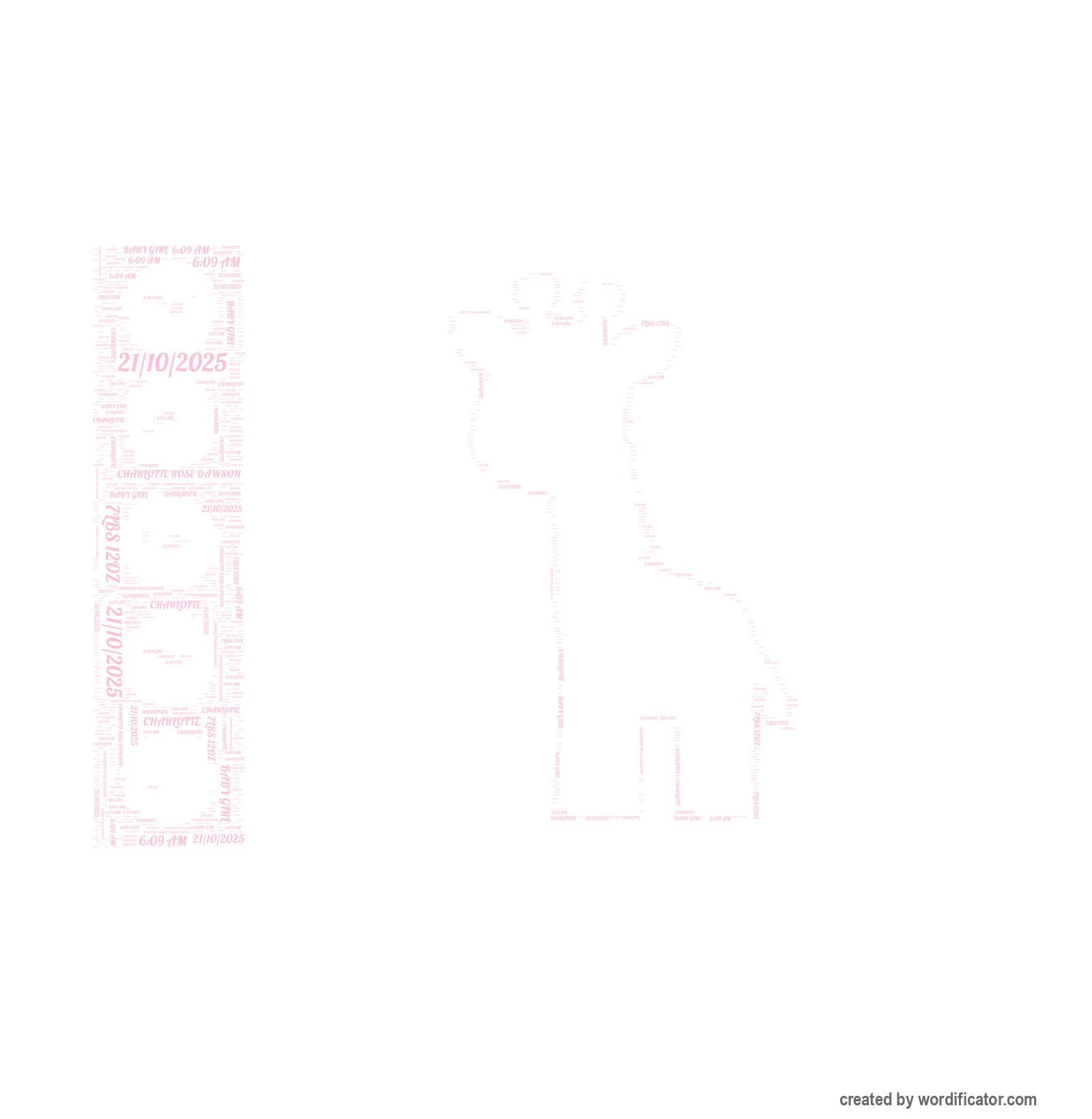 baby girl 7lbs 12oz 6:09 am Charlotte Rose Dawson daughter Charlotte 21/10/2025