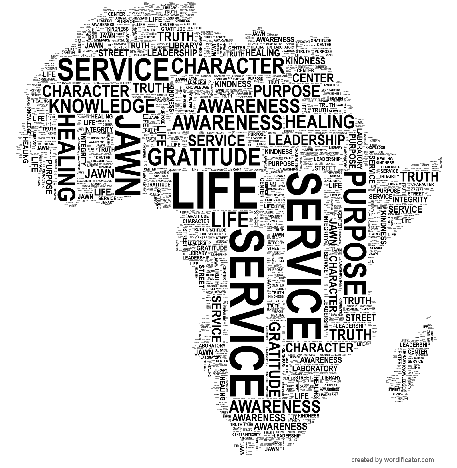 TRUTH KNOWLEDGE AWARENESS gratitude character kindness purpose service integrity leadership HEALING CENTER LIFE LABORATORY Library Street Jawn