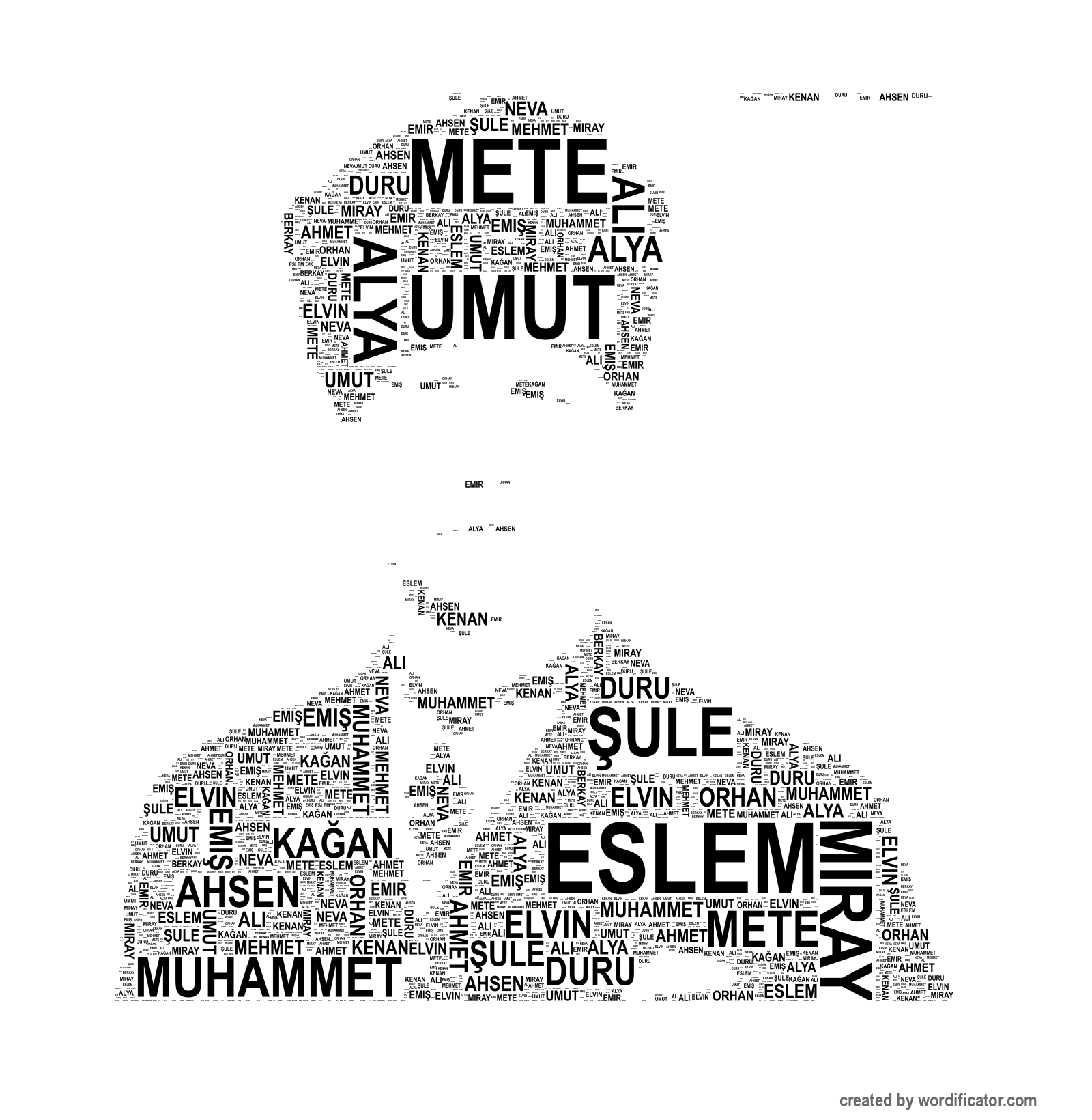 Ahmet Ahsen Berkay Umut Kenan Elvin Alya Eslem Miray Muhammet Ali Mehmet Emi? ?ule Neva Duru Orhan Emir Mete Ka?an Mirel Fatma Nisa Hamza Bar?? Eda Ay?e Beren ?engül Ada Yaren Tuna Furkan Akif