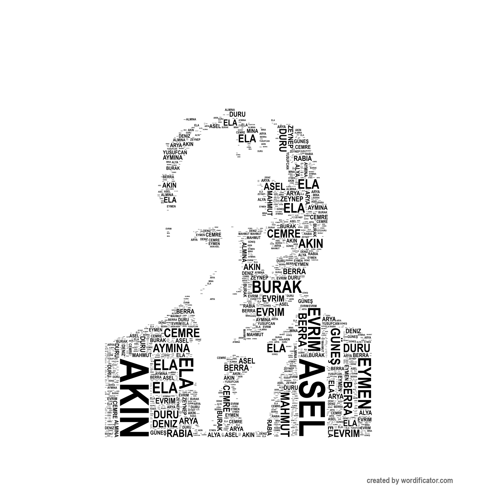 Ak?n Almina Alya Arya Asel Mina Berra Burak Aymina Yusufcan Deniz Ela Duru Güne? Evrim Cemre Rabia Zeynep Eymen Mahmut Ahmet Demir ?pek Bu?rahan Ali Osman ?lknur Mustafa Fatih ?nci Esila Ege Nehir Aybars Yi?it S?raç Aziz Ne?e Defne Miray