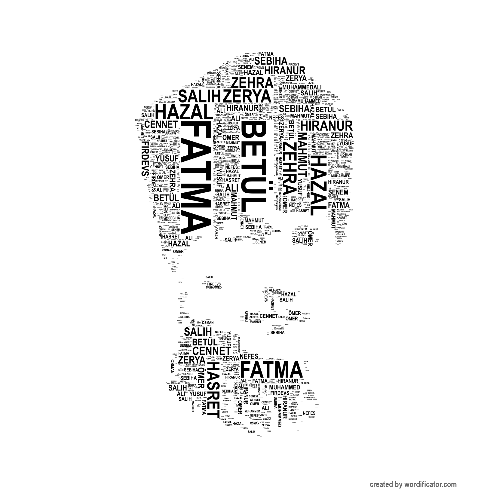 Sebiha Hazal Ömer Ali Osman Muhammed MuhammedAli Yusuf Mahmut Salih Fatma Zehra Betül Zerya Cennet Firdevs Hasret Senem Hiranur Nefes Umut Hasan