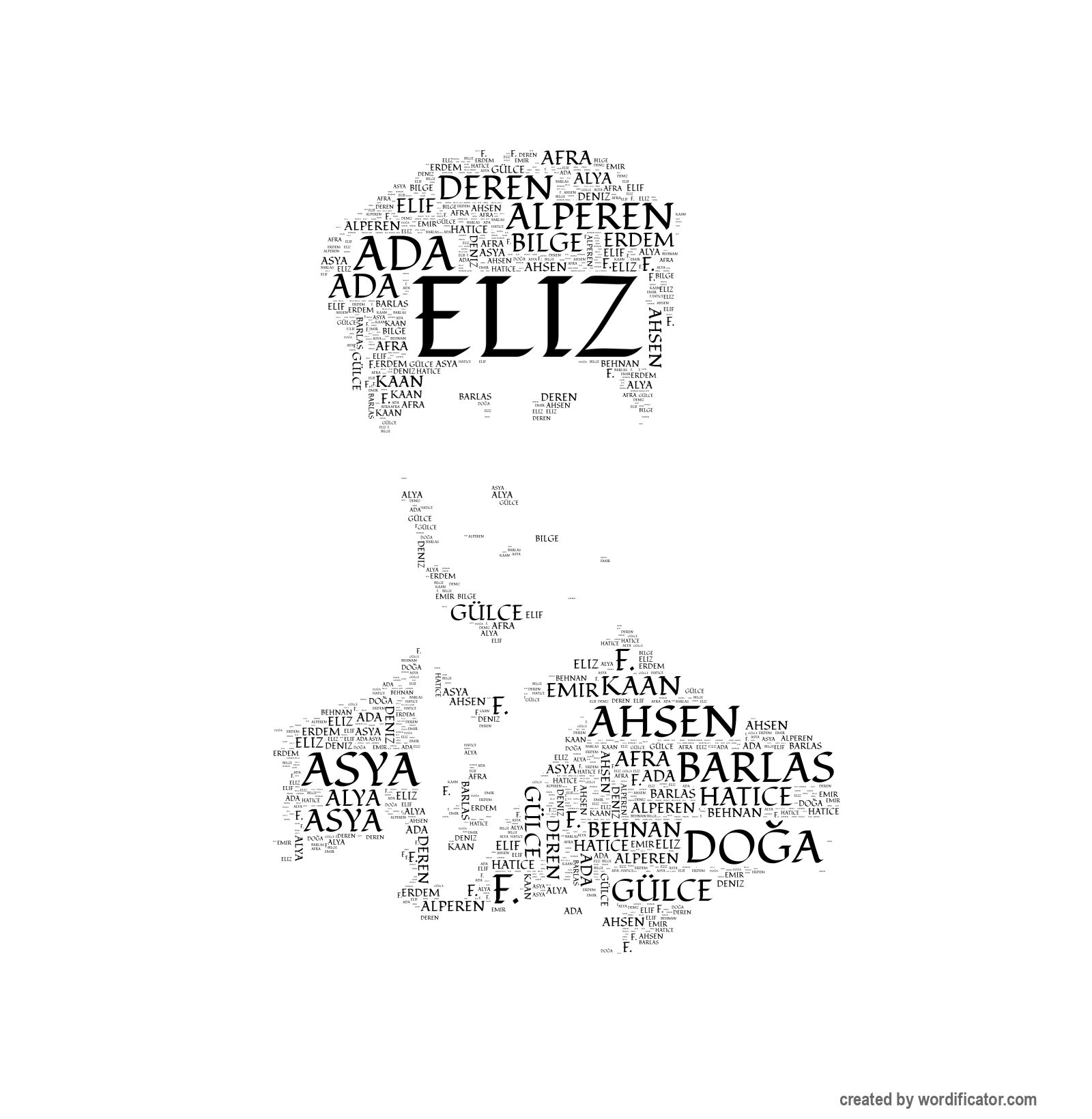 Afra Ahsen Alperen Alya Asya Behnan Bilge Deniz Deren Do?a Elif Eliz Ada Barlas Emir Erdem F. Kaan Gülce Hatice Hazal Kerem Ömer Liya Nil Duru Reyyan Sare