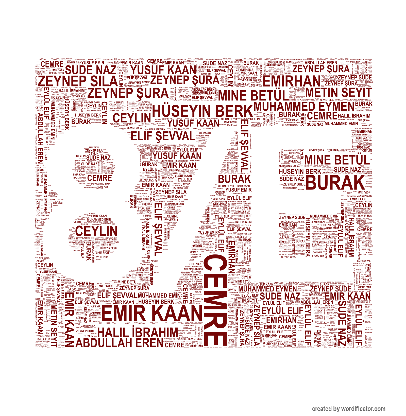 Zeynep S?la Eylül Elif Metin Seyit Elif ?evval Abdullah Eren Emir Kaan Halil ?brahim Hüseyin Berk Muhammed Emin Sude Naz Zeynep Sude Zeynep ?ura Mine Betül Yusuf Emir Yusuf Kaan Muhammed Eymen Burak Emirhan Cemre Ceylin Esila Enes Ömer Ya?mur Umut Necat