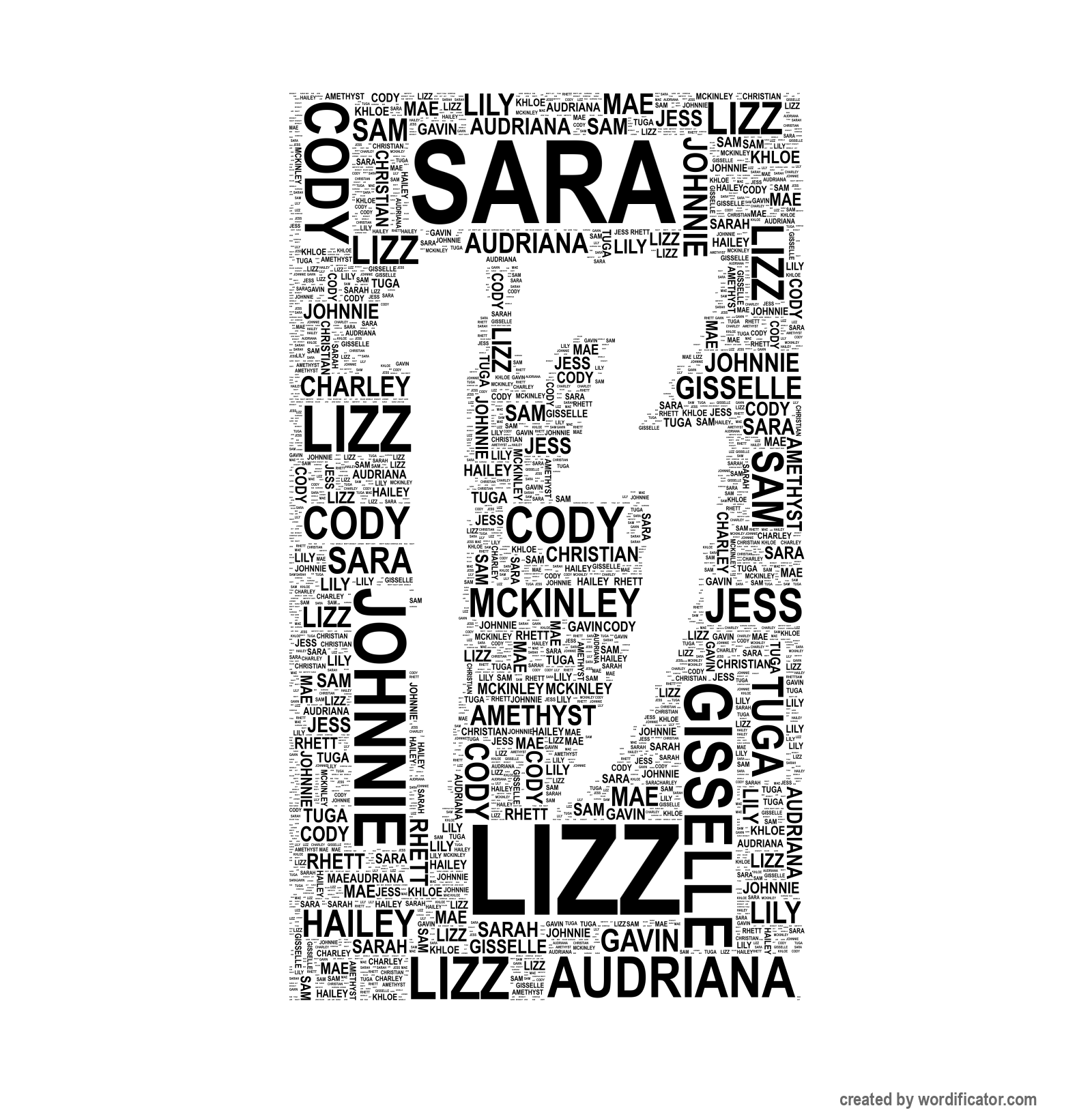 Rhett Lily Johnnie Khloe Charley Hailey Gavin Audriana Christian Jess Lizz Mae Mckinley Amethyst Cody Sara Sarah Tuga Gisselle Sam Seth Jenna Raymond McKenzie Mariah Pat Abby Jayden Jake Tawny Devon Blake Casper Andre Elijah Sidney Tyler Brayden MJ Harold Billy Kristen Peyton Martina Karri Jon-Luke Jennifer Jocelyn Scotty Ozzy Jessie Dylan Steve