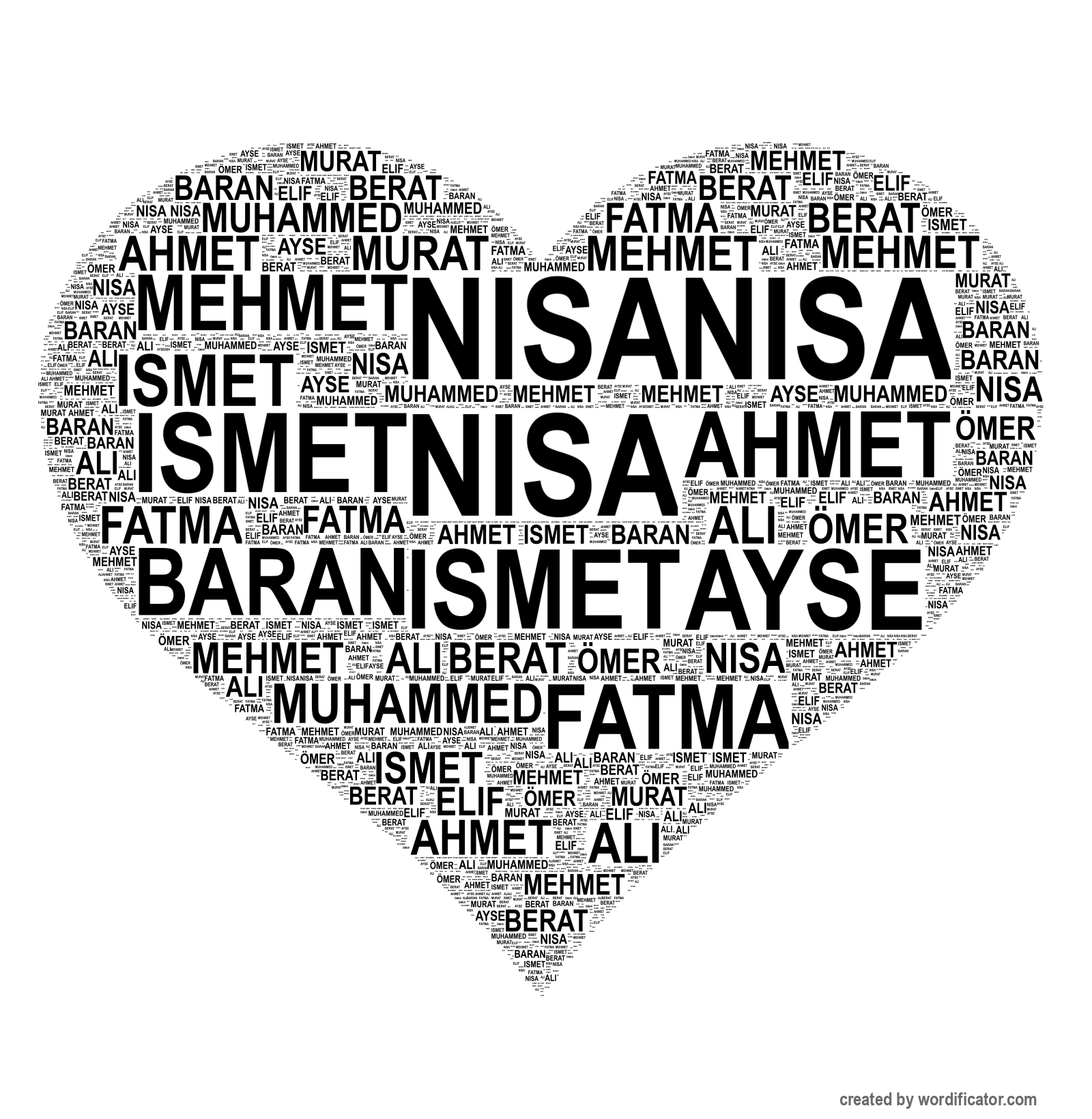 ahmet mehmet muhammed ömer ayse fatma nisa elif ali baran berat murat ismet