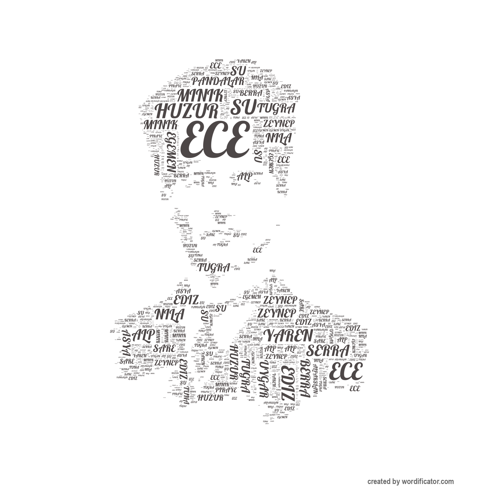 Zeynep Asya Egemen Pandalar Minik Huzur Serra Uygar Alp Yaren Su Nila Piraye Tugra Tuna Alparslan Ece Berra Ediz Sare Ata Ebrar Esra Fazile Nisa Duygu