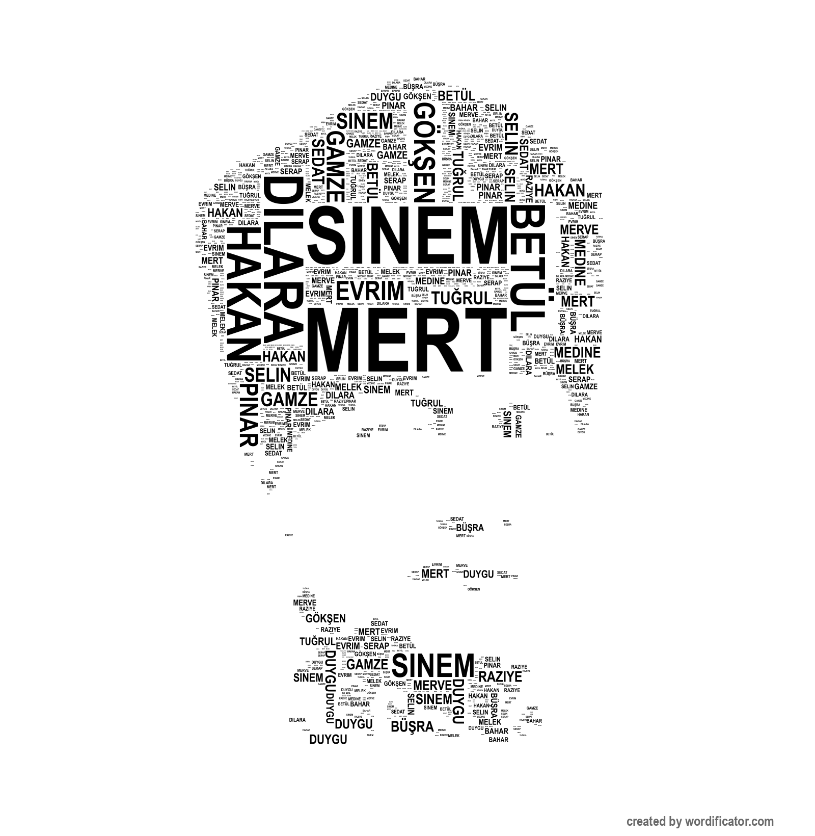 Melek Sinem Medine Duygu Bü?ra Gamze Dilara Serap Selin Betül Gök?en Raziye Bahar Merve Sedat Evrim Tu?rul Hakan P?nar Mert