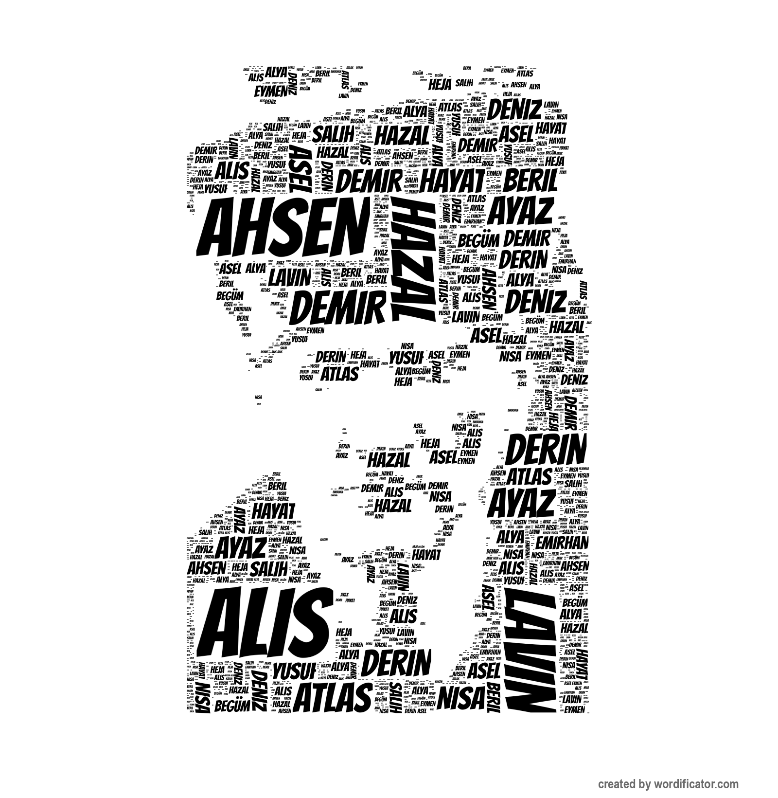 Nisa Demir Alya Yusuf Derin Ayaz Hayat Salih Ahsen Lavin Alis Asel Atlas Begüm Beril Eymen Deniz Emirhan Heja Hazal Hilal Hira ?brahim Kaan Mustafa Nilduru Poyraz Toprak Rüzgar Sultane Emre