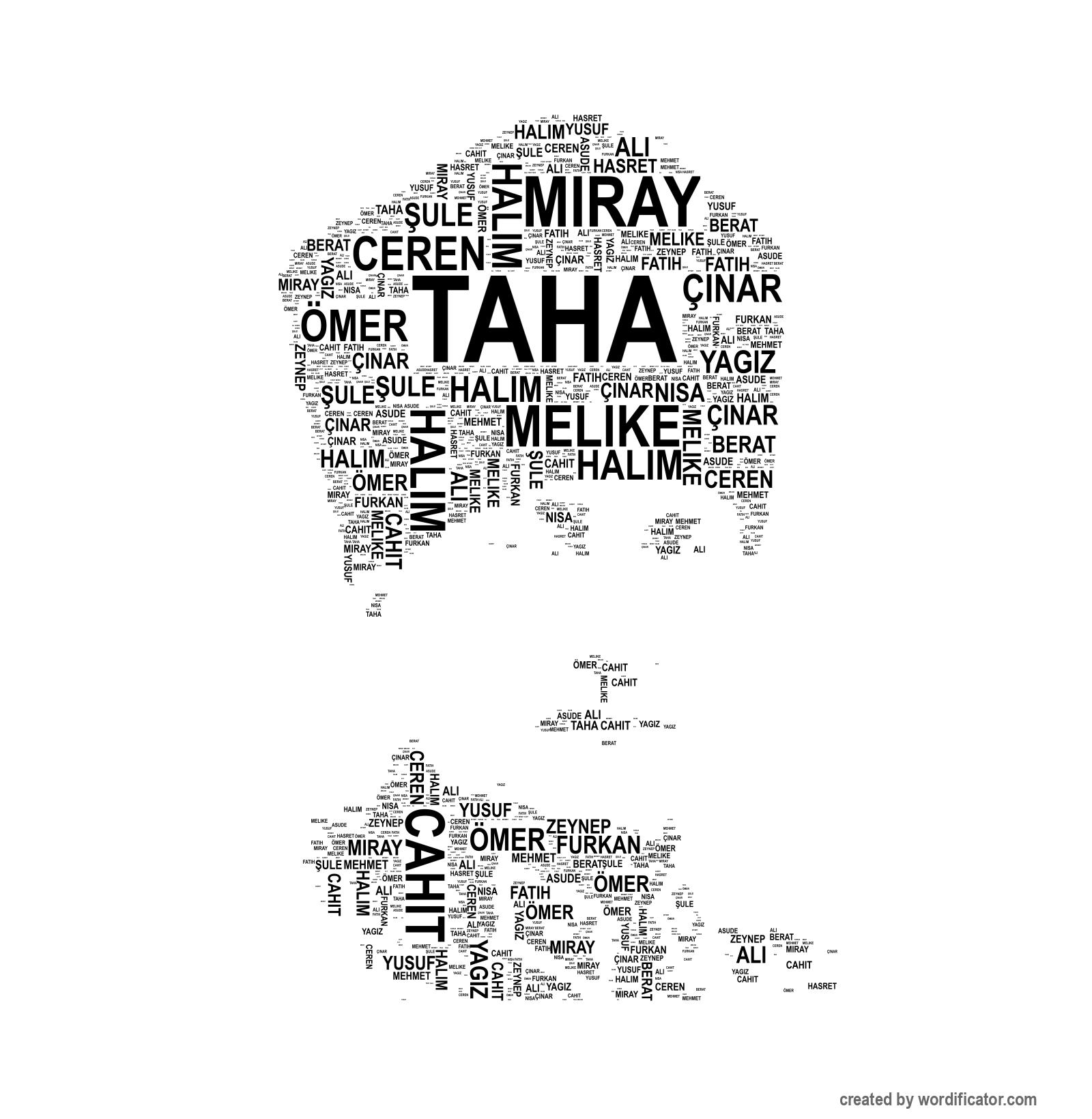 Ali Mehmet Taha Furkan Ömer Yag?z Halim Zeynep Nisa Ceren Fatih Ç?nar Cahit Berat Asude Miray Yusuf ?ule Hasret Melike