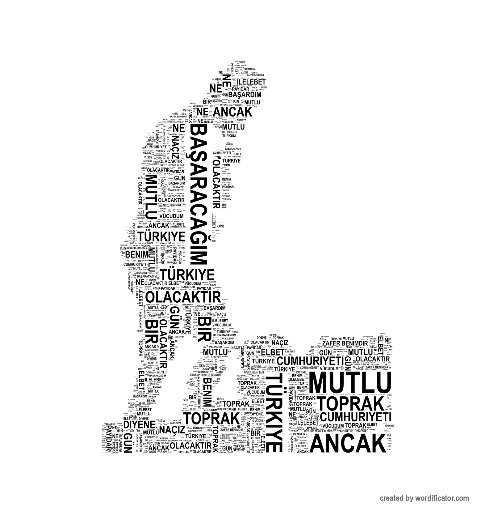 Türküm Zafer benimdir Ba?araca??m Ba?ard?m Ne mutlu diyene. Benim naçiz vücudum elbet bir gün toprak olacakt?r ancak Türkiye Cumhuriyeti ilelebet payidar kalacakt?r. Yurtta sulh cihanda sulh. Sizlere sald?rman?z? de?il ölmenizi emrediyorum. Memleketin efendisi hakiki müstahsil olan köylüdür. Do?ruyu söylemekten korkmay?n?z. Beni görmek demek mutlaka yüzümü de?ildir. fikirlerimi benim duygular?m? anl?yorsan?z ve hissediyorsan?z bu yeterlidir. Cumhuriyetinin temeli kültürdür. Süngülerle silahlarla kanla kazand???m?z askeri zaferlerden sonra kültür bilim fen ekonomi alanlar?nda da zaferler kazanmaya devam edece?iz. Zafer diyebilenindir. Ba?ar? ise diye ba?layarak sonunda Egemenlik verilmez al?n?r. Egemenlik kay?ts?z ?arts?z ulusundur. Milleti kurtaranlar yaln?z ö?retmenlerdir. Ö?retmenler: Yeni nesiller sizlerin eseri olacakt?r. Hayatta en mür?it ilimdir. Türk ba??ms?z ya?am?? ba??ms?zl??? varolmalar?n?n yegâne ko?ulu olarak kabul etmi? cesur insanlar?n torunlar?d?r. Bu millet hiçbir zaman hür olmadan ya?amam??t?r ya?ayamaz ya?amayacakt?r. Biz Türkler tarih boyunca hürriyet istiklale timsal olmu? milletiz. San'ats?z kalan ulusun hayat damarlar?ndan biri kopmu? demektir. vatan? bütündür parçalanamaz. milletinin tabiat âdetlerine uygun idare Cumhuriyet idaresidir. milleti ayr?lmaz bütündür. Millet sevgisi kadar büyük mükâfat yoktur. memleket tarihte Türk'tü halde Türk'tür ebediyen ya?ayacakt?r. istiklâlsiz Türk ö?ün çal?? güven. Bütün cihan bilsin ki için tarafl?k vard?r tarafl???. Yurt ona hizmetle ölçülür. Çanakkale geçilmez !