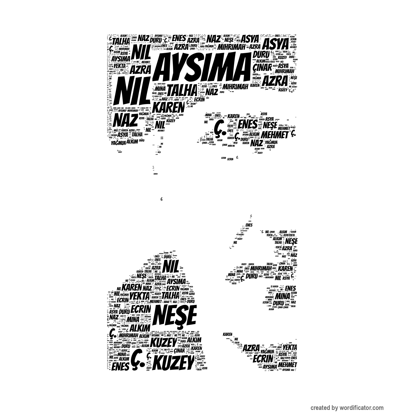Nil Mihrimah Karen Naz Azra Ecrin Mina Duru Aysima Ne?e Ya?mur Ç?nar Enes Mehmet Talha Yekta Ç. Alk?m Kuzey Asya Ça?r? Aybars Emir Elis Nisa