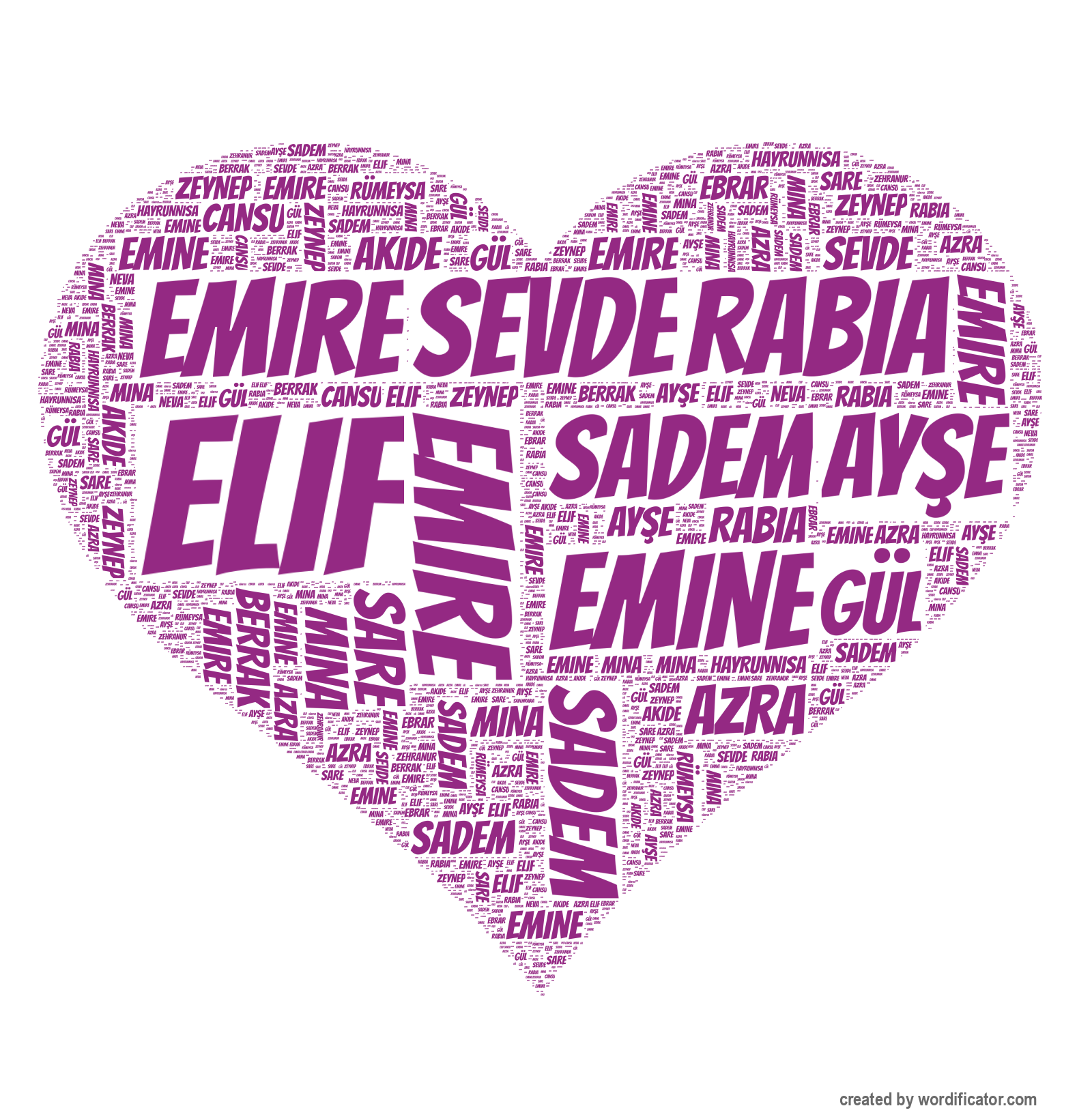 Cansu Ebrar Neva Azra Elif Ay?e Sadem Zeynep Hayrunnisa Emine Gül Berrak Emire Akide Sare Rümeysa Mina Zehranur Sevde Rabia Ceylin Naz ?eymanur Meryem Ümran Esma
