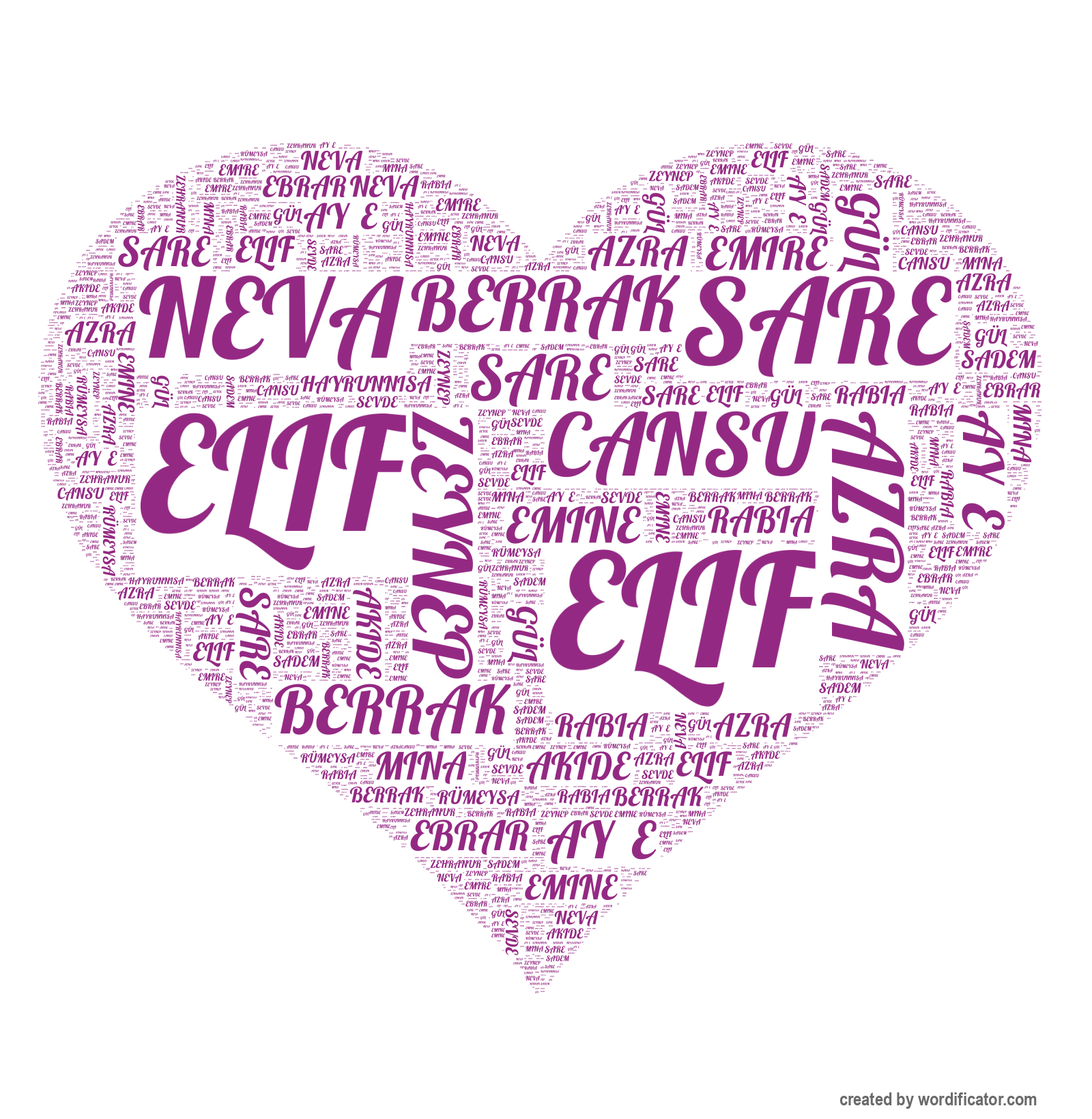 Cansu Ebrar Neva Azra Elif Ay?e Sadem Zeynep Hayrunnisa Emine Gül Berrak Emire Akide Sare Rümeysa Mina Zehranur Sevde Rabia Ceylin Naz ?eymanur Meryem Ümran Esma
