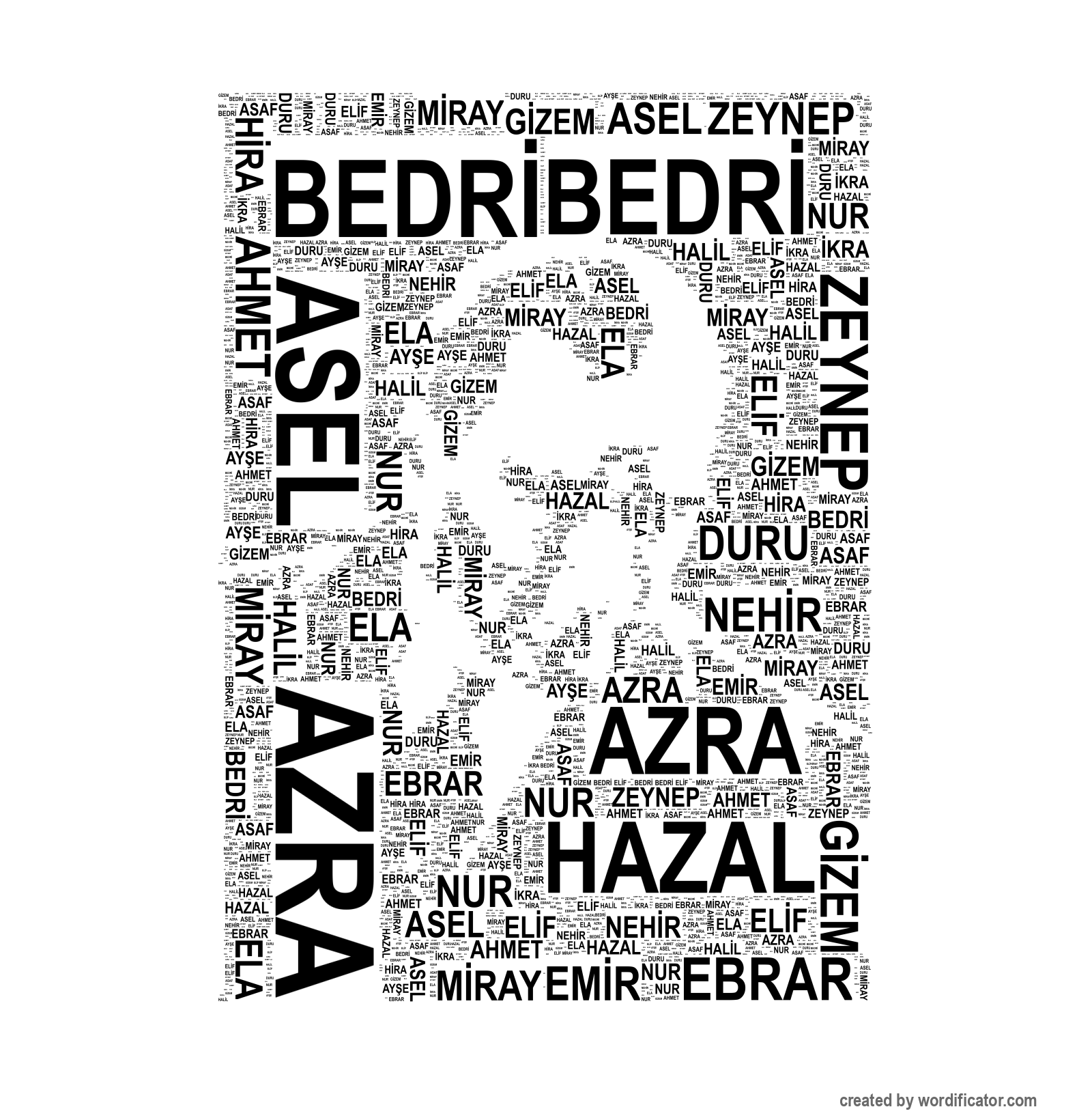 AZRA DURU AHMET ASAF HAZAL ASEL EL?F ZEYNEP AY?E M?RAY BEDR? EM?R EBRAR ELA G?ZEM HAL?L H?RA NUR ?KRA NEH?R SILA MUSTAFA CAN KÜBRA MEHMET BERAT MUHAMMED AL? NURS?MA SAMETCAN TUBA VEYSEL YUSUF ZÜLEYHA FARAC