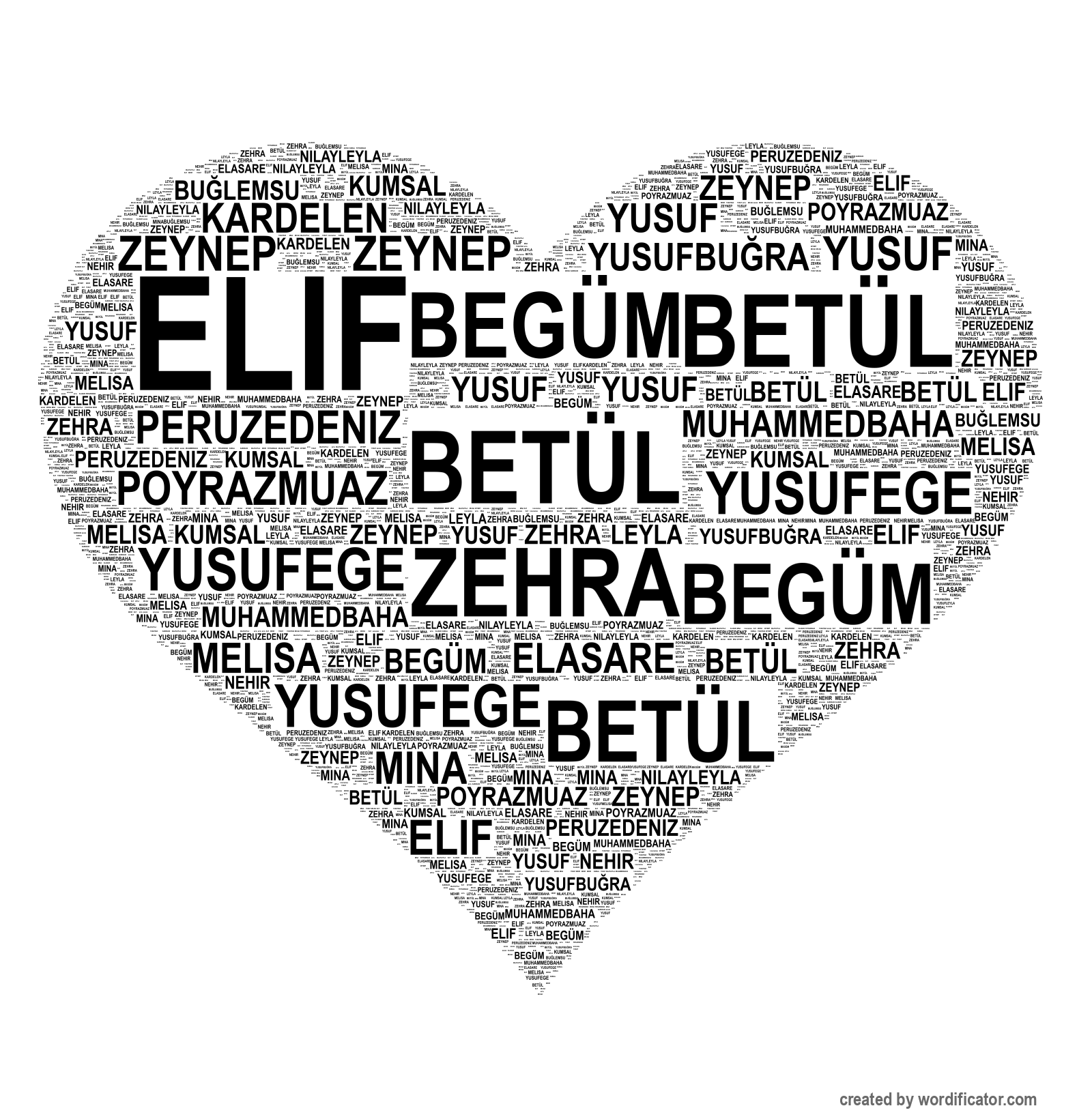 PoyrazMuaz ElaSare Zeynep Zehra Elif NilayLeyla Nehir Mina Leyla Melisa Begüm PeruzeDeniz Betül MuhammedBaha YusufBu?ra YusufEge Yusuf Kumsal Bu?lemsu Kardelen SaimAyaz Ya??z Özay NurHilal EmirTalha Eymen Erdem Devrim MahirAkif Hira Aylin
