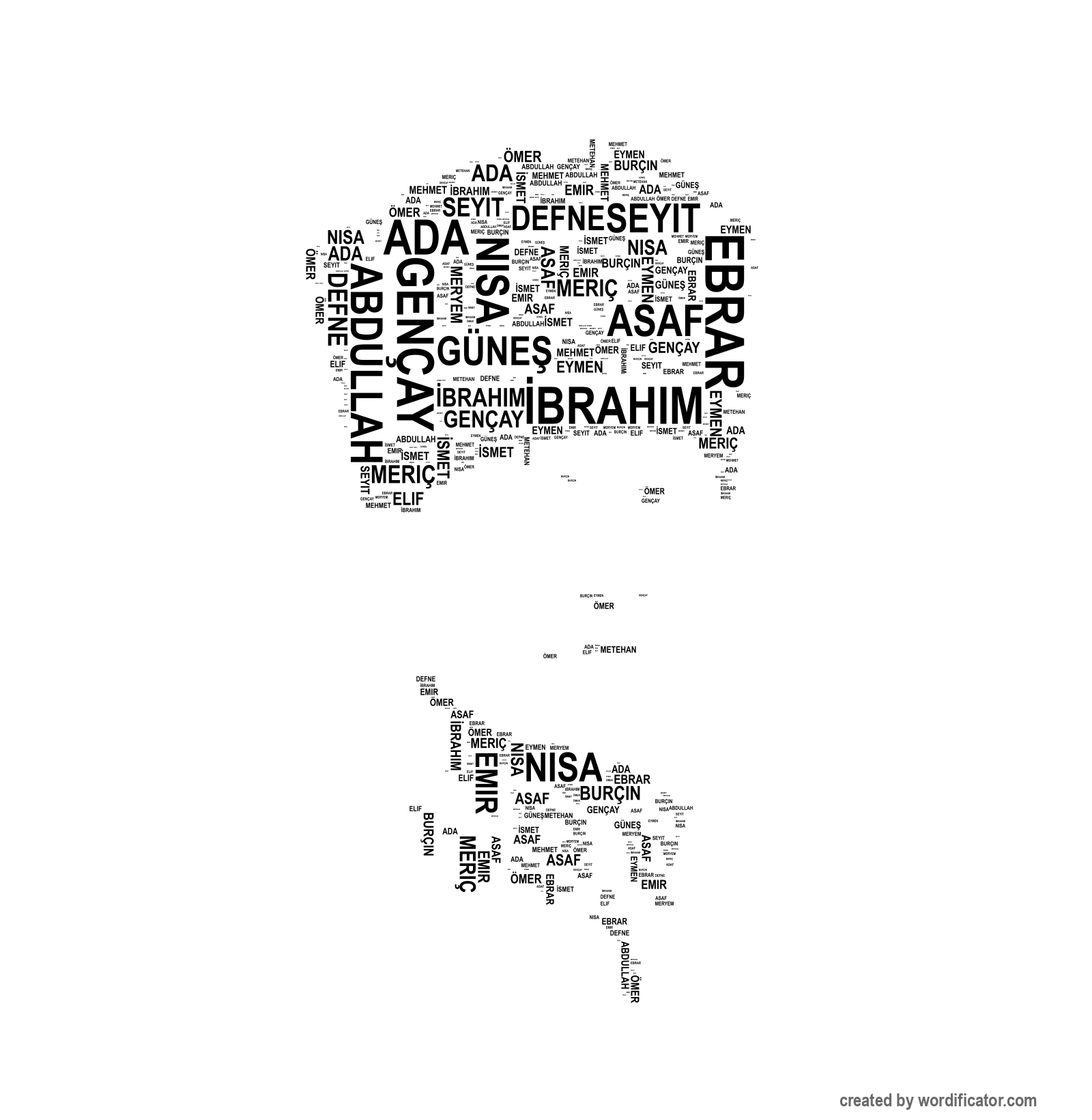 Ada Abdullah seyit Burçin Defne Ebrar Elif Emir Gençay Güne? ?brahim ?smet Mehmet Meriç Meryem Metehan Nisa Ömer asaf Eymen Rüzgar Ege Süleyman Ka?an Ece Derin Yusuf Ya?mur Ya??z