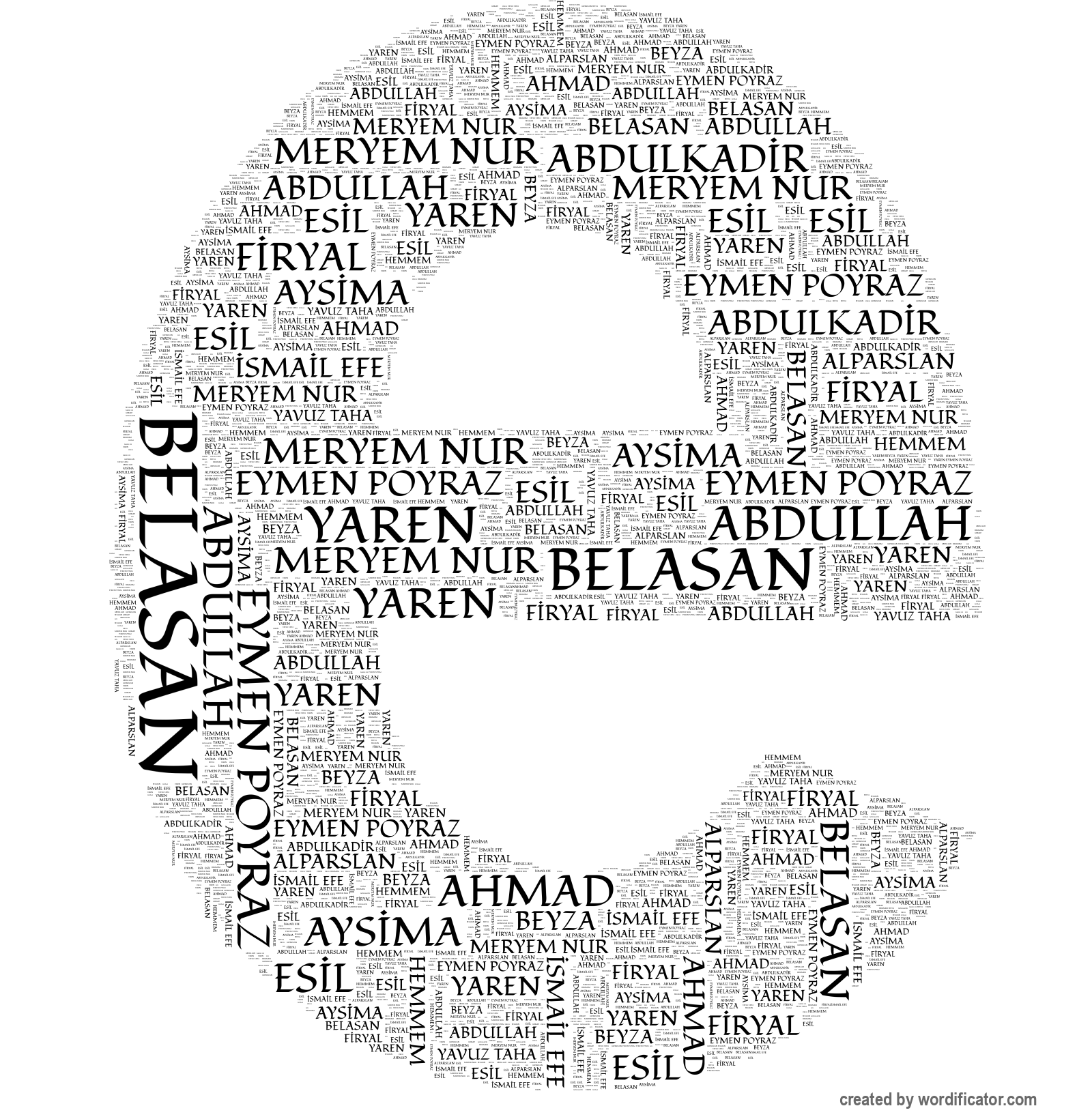 MERYEM NUR EYMEN POYRAZ YAVUZ TAHA ?SMA?L EFE ABDULLAH ALPARSLAN BEYZA YAREN AYS?MA HEMMEM AHMAD F?RYAL BELASAN ES?L ABDULKAD?R
