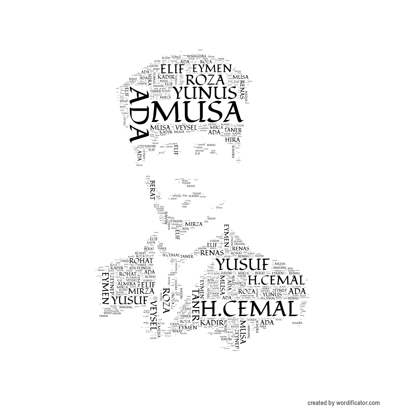 Roza Musa Eymen H.Cemal Yunus Almira Yusuf Renas Veysel Mirza Elif Kadir Hira Ada Taner Armanç Rohat Havin Berat Zeynep Arin Lokman Adem Kayra Ceylin Seda Eslem Lavin Baver Betül Ali