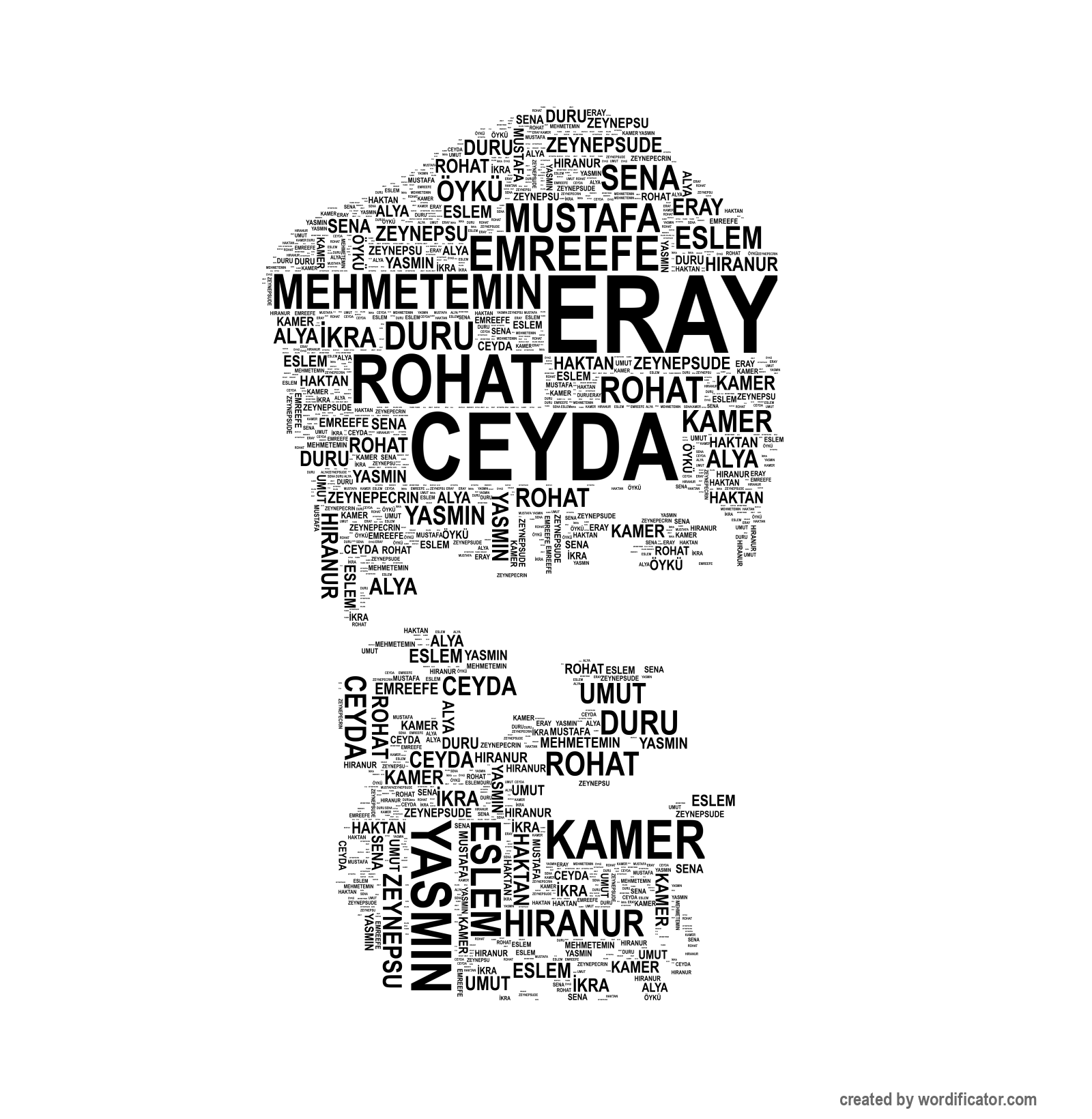 Alya MehmetEmin ZeynepSu Haktan Eray Sena EmreEfe Kamer ZeynepEcrin Yasmin ZeynepSude HiraNur ?kra Ceyda Duru Eslem Mustafa Öykü Rohat Umut YusufAli Bu?lem Mehdi Ay?em Wuma?er Muhammed Zümra Nisa Azra Rüzgar S?raç AliRaza Safiya